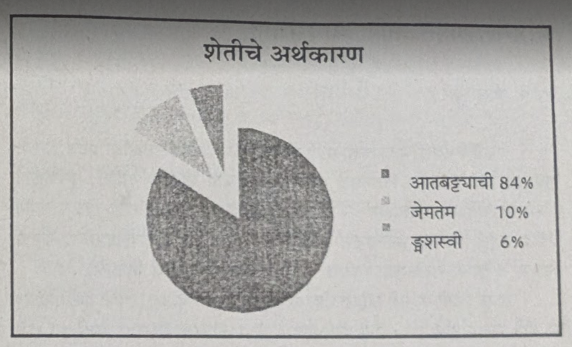 म्हणजे ८४% शेतकऱ्यांची शेती थेटपणे आतबट्ट्याची आहे. १०% शेतकरी जेमतेम नाक पाण्यावर ठेवू शकत आहेत. उरलेले ६% यशस्वी आहेत.